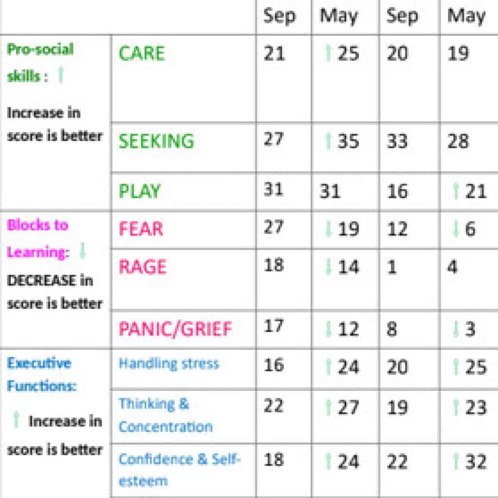 In addition to her teacher’s observations, Petra’s parents noticed positive results. She began seeking out affection and reassurance more willingly, and on occasions when arguments arose, the conflicts were shorter and less intense. Recovery time after these arguments also reduced, demonstrating her increased nervous system flexibility.